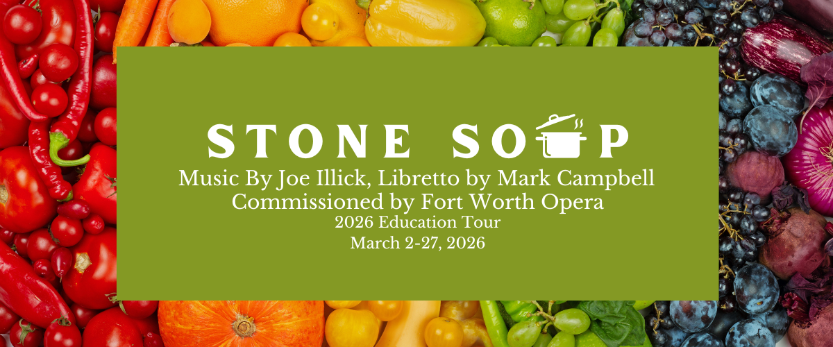 STONE SOUP was commissioned by Fort Worth Opera by arrangement with The Barbara Hogenson Agency, Inc. STONE SOUP is 35 minutes long and sung in English.